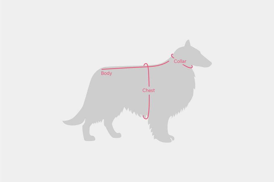 Please ensure you measure snug to the dog’s body, and that your dog is standing up straight, looking forward and not arching its back. A soft tape measure is best. For long-haired dogs you may find it easier to use a piece of string to take the measurement, then read it off on a tape measure or ruler.